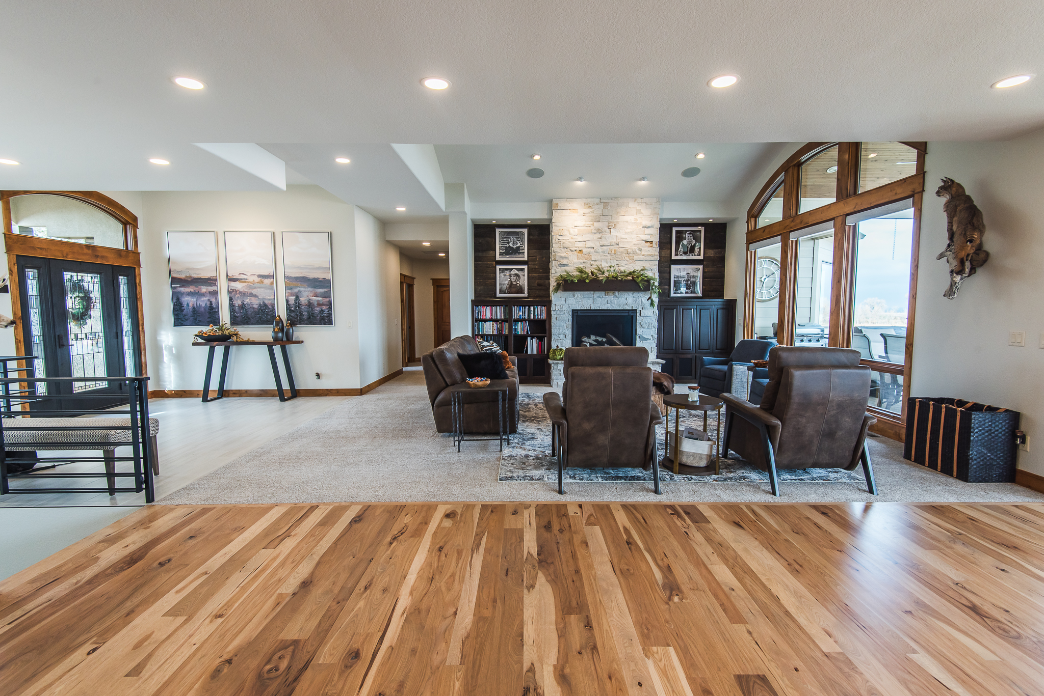This project at Boyd Lake transformed a home’s functionality and aesthetic with a comprehensive renovation. The primary goal was to create a more open and inviting living space. We began by strategically relocating the main staircase from the center of the floor to an exterior wall, immediately opening up the entire living area.
