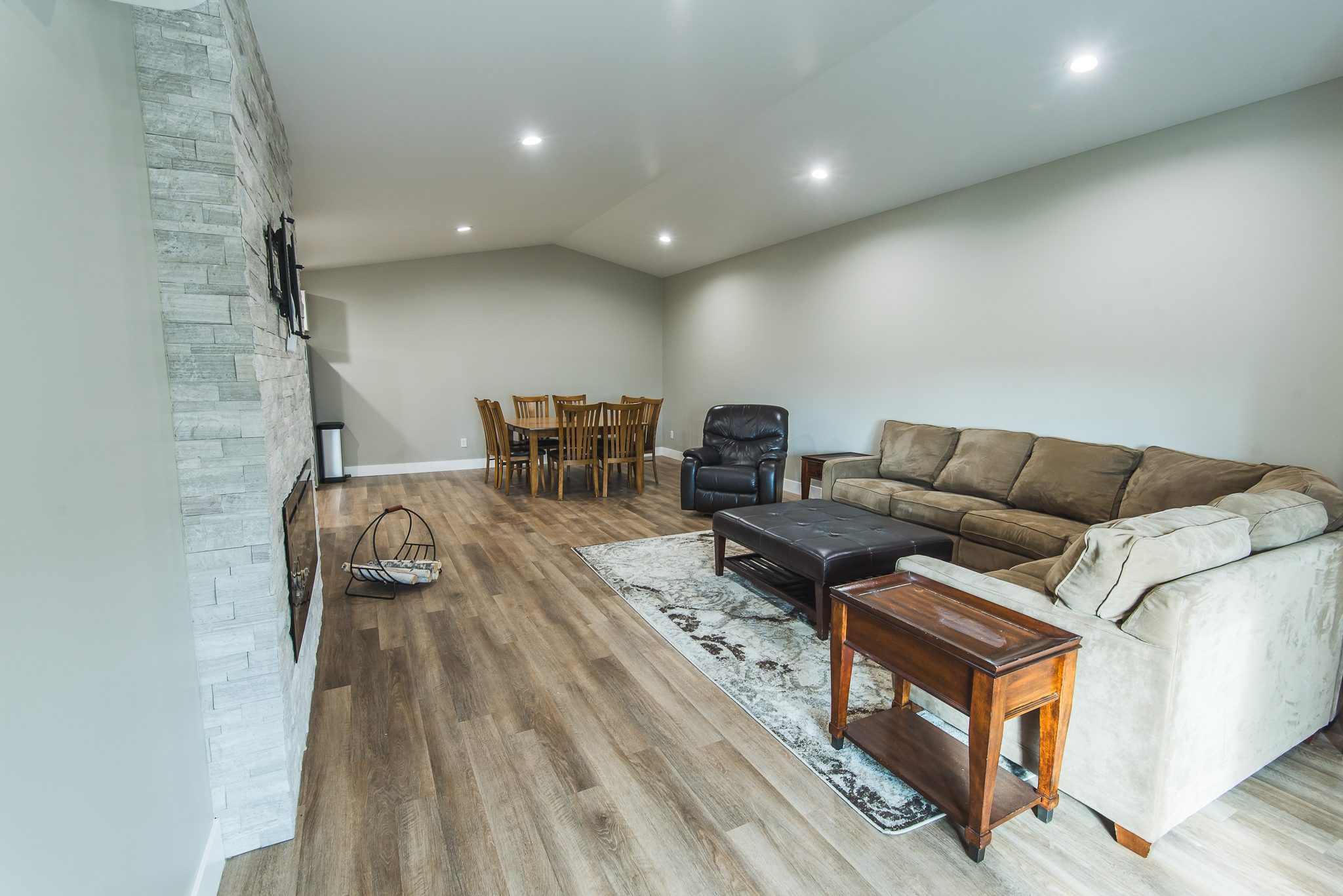 Upstairs, our team executed a seamless home renovation that included adding a new laundry room and powder room, providing modern convenience. We also refreshed the kitchen and installed a new, custom fireplace with a beautiful surround, creating a new focal point for the main living space. Finally, we expertly tied the existing flooring into new entryway tile, ensuring a cohesive and polished look.